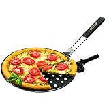 The non-stick pizza grill pan works with either fresh or frozen pizza. The 12-Inch diameter ribbed non-stick pan includes a pizza cutter/server and has a removable handle. The removable handle features a soft touch grip.