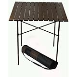 We are the maker of the perfect portable table that goes anywhere. This is a portable table for any indoor or outdoor activity. The collapsible tall aluminum table rolls up in seconds and fits into an easy carry bag. This unique compact and portable design offers the most convenient way to have a full-size table anywhere you want. Great to take to any indoor/outdoor adventures like picnics, park, camping, lake, river, beach, lawn concerts, vacation, use as portable game table or anywhere around the house. Comes with water resistant aluminum top, 2 cross bars, 4 legs and a mesh carrying bag with pocket. Set up size is 27 inches wide by 27 inches long by 27 inches high. Brown.